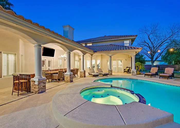 The 4-bedroom Lux 5Br Vegas Home W Pool, Spa, Games, Near Strip Las Vegas offers proximity to nearby tourist spots, such as the Las Vegas Harley-Davidson, situated around 10 minutes' drive away.